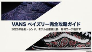 2026年に流行するVansのペイズリー新作モデルの全貌と、バンダナ柄との違いを徹底解説します。ABCマート限定やOTWなど、注目のVansのペイズリー新作の入手方法から、男女別の最旬コーデ術まで網羅。抽選販売の情報も交え、運命の一足選びをサポートします。