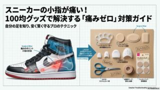 スニーカーの小指が痛い悩みを100均グッズで解決しましょう。この記事では、スニーカーの小指が痛い原因を100均の視点から分析し、ダイソーやセリアのサポーター活用術や、靴紐の結び方で除圧するコツを詳しく解説します。歩行の快適さを取り戻し、お気に入りの一足を履きこなす秘策が満載です!