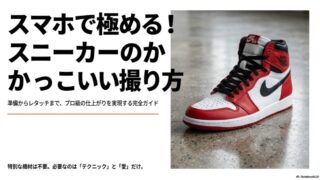 スニーカーのかっこいい撮り方のコツを知りたい方必見!iPhoneなどのスマホ1台で劇的に映える、プロ直伝の撮影テクニックを網羅しました。構図や光の使い方はもちろん、理想のスニーカーのかっこいい撮り方をマスターしてSNSで注目を集めましょう。今すぐ実践できる具体的なコツが満載です。