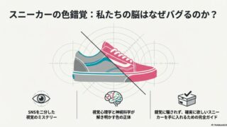 SNSで話題のスニーカーの色の錯覚はなぜ起きる?ピンクやグレーに見える理由を脳科学で解説します。バンズやナイキの事例を軸に、スニーカーの色の錯覚が起きる仕組みや、公式の抽選販売で正解のカラーを入手するコツを紹介。デバイスの影響や見え方の個人差まで網羅した決定版です。
