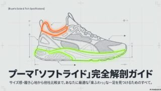 プーマ プーマソフトライドの口コミと評判は?サイズ感や履き心地を検証 プーマのソフトライドの口コミが気になる方へ。驚きのクッション性や話題のイーズイン機能、失敗しないサイズ選びの秘訣を徹底解説。プーマのソフトライドの口コミで評判の履き心地や軽さから、気になる耐久性のデメリットまで詳しく網羅しました。自分に最適な一足を見つけたい方は必見です。 2026.04.07 プーマ
