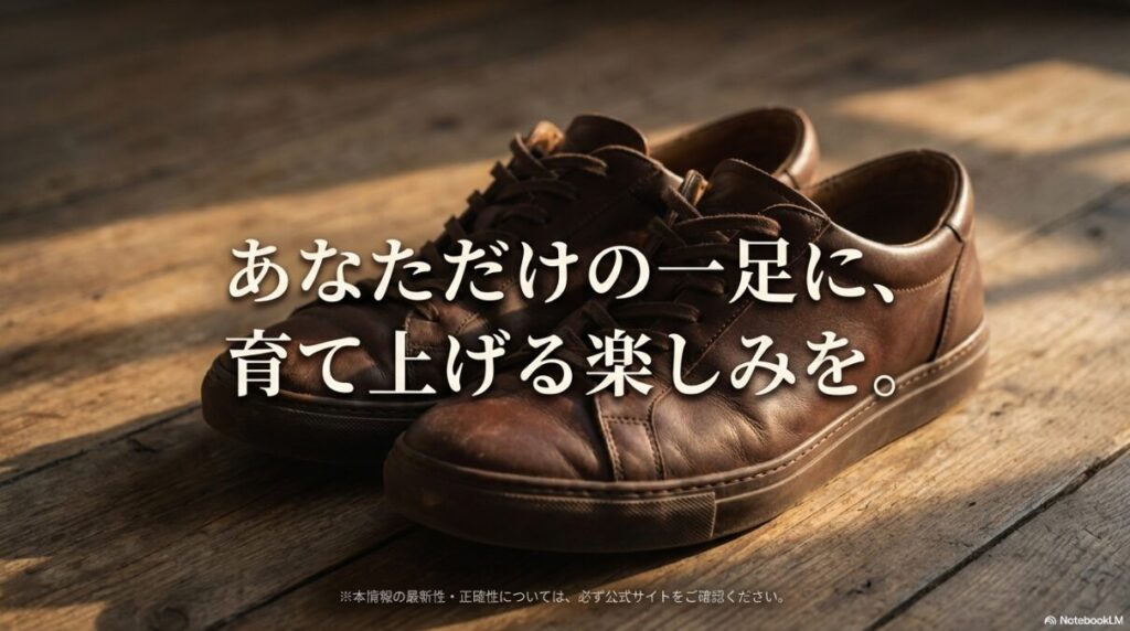 日本人の職人が、日本人の足のことを考えて設計した木型。そして厳選された素材。これらが組み合わさって生まれる「にゅ」のスニーカーは、単なるファッションアイテムを超えて、長く付き合えるパートナーになり得るポテンシャルを秘めています。決して安い買い物ではありませんが、手入れをしながら長く履ける一足を探しているなら、そのユニークなデザインと共に、育てる楽しみを味わってみる価値は大いにあります。