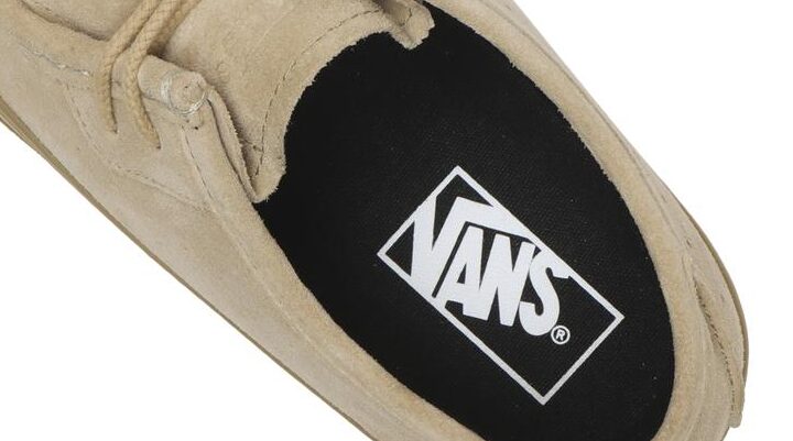 VANSカーバーローの断面写真。ブーツのようなスエードアッパーと、スニーカー仕様のバルカナイズド製法ソール、内部のクッション構造がはっきりと分かる。